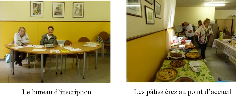 C’est près d’une centaine de randonneurs et de randonneuses qui s'est présentée le 7 octobre pour notre randonnée automnale. Au bureau d'inscription les attendaient de pied ferme Madeleine et Dominique ! Bien entendu, les pâtissières étaient également présentes et ravies de proposer leurs délicieux mets accompagnés de boissons froides ou chaudes.