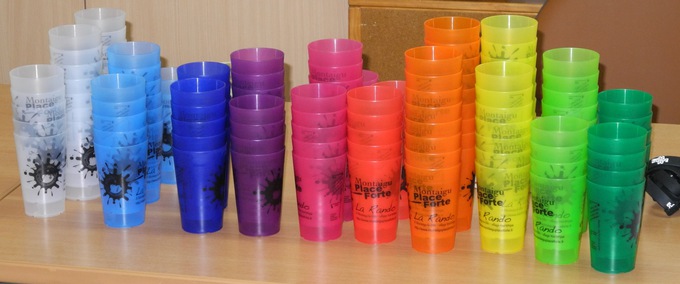Il est dans l'air du temps de réduire les déchets. Déjà vu sur d'autres randonnées organisées, MPF a pris l'initiative, cette année, d'abandonner les gobelets jetables au profit des gobelets réutilisables, un projet qui a nécessité nombre d'heures de travail pour le volontaire qui s'est chargé de la réalisation. Personnalisables à la commande, il a fallu créer un visuel à l'effigie de MPF et un slogan en rapport avec la marche, en tenant compte des spécificités et contraintes imposées par tel ou tel fabricant. Au final, c'est l'Atelier Du Gobelet qui a été retenu (- fabrication 100% française -). Plus contraignant sur les dimensions du visuel (zone d'impression la plus petite de tous les fabricants), il propose, par contre, la palette de couleurs de gobelets la plus étendue (10), nous permettant ainsi de satisfaire les goûts du plus grand nombre de clients. Nous avons écoulé environ 150 gobelets.