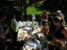 À Presles, les derniers randonneurs du circuit 17 km ont peine à repartir tellement l'ambiance est cordiale. Michèle et Liliane résistent crânement au vent froid venu du nord. Il faut dire que tout avait été joliment préparé, tables et napperons, paniers de fruits et amuse-bouches, un peu à la manière d'un buffet de réception (- quelle chance ils ont, nos randonneurs ! -), par Christine, membre de notre association et Maire de notre commune de Montaigu-le-Blin.