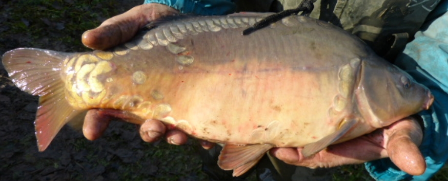 Une petite taille pour cette carpe cuir mais bien en chair. Elle a été relâchée dans son environnement naturel. Bravo !