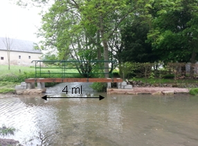 L'ensemble prend forme... La passerelle dispose d'une ouverture sous plancher de 3 m2 correspondant à la même surface d'ouverture du pont de pierre juste en amont. Ce point est fort important. La passerelle ne doit pas être submergée en cas de forte crue. Il convenait de prévoir dans le schéma projeté cette adéquation. Fenêtre d'ouverture : 4 m x 0,75 m de hauteur. |