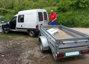 Approvisionnement en sable à enduire. André toujours en action... |