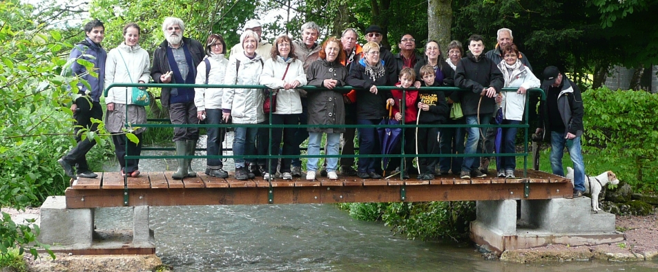 Pour tester la solidité de l'ouvrage, nous avons fait appel à la famille VALENÇON de POITIERS (86) en séjour dans le bourbonnais. Ils étaient donc, le 19 mai, 21 sur la passerelle ! Et tout va pour le mieux, à en voir leur sourire... Tous fiers d'inaugurer la passerelle du Valençon. Certes, ce n'est pas le viaduc de Millau, on en convient, mais elle accuse quand même un poids total à vide de 2,5 tonnes pour 5,50 mètres de long et 75 cm de large.