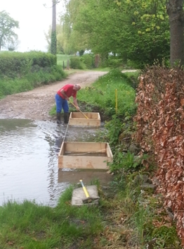 Les passages successifs des véhicules au fil du temps ont fortement dégradé le lit de la rivière à cet endroit. Pour sécuriser ce lieu aux vététistes, des galets de l'Allier et du scalpage ont été mélangés pour combler les nombreuses ornières présentes.