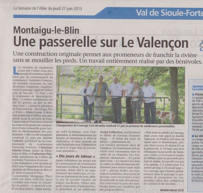 C'est sous l'impulsion des municipalités de Montaigu-le-Blin et de Saint-Gérand-le-Puy, relayée par la COM-COM de Varennes-Forterre, qu'il fut décidé, courant 2012, de l'édification d'une passerelle dédiée aux marcheurs.