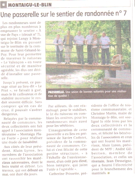 Quand le Valençon s'enrichit d'une nouvelle passerelle.