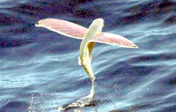 L'exocet plane au-dessus de l'eau La baudroie oups! la baignade pas cette fois-ci!