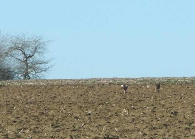 Au loin, des chevreuils s'enfuient en galopant... (au centre de l'image)