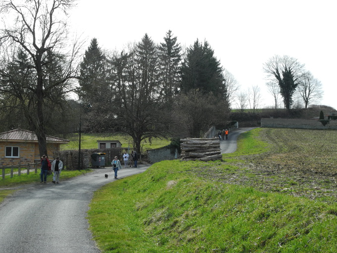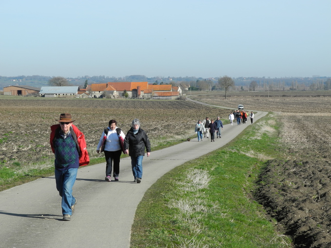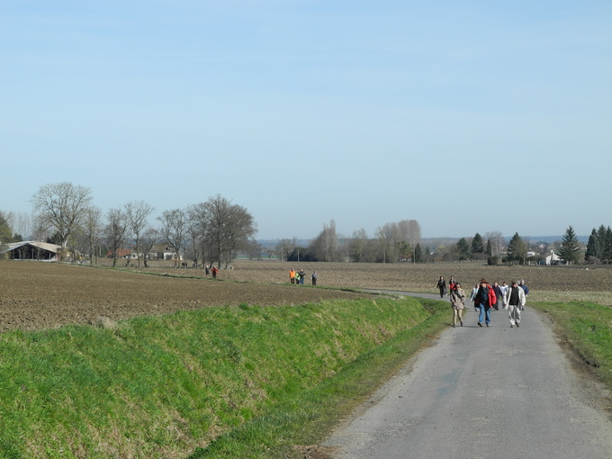 À l'approche du Moulin du Saule, le groupe commence à s'étirer comme une chenille. Remarquez comme l'homme de tête et celui de queue portent tous deux un gilet de visibilité. À MPF, on a le sens de la sécurité.