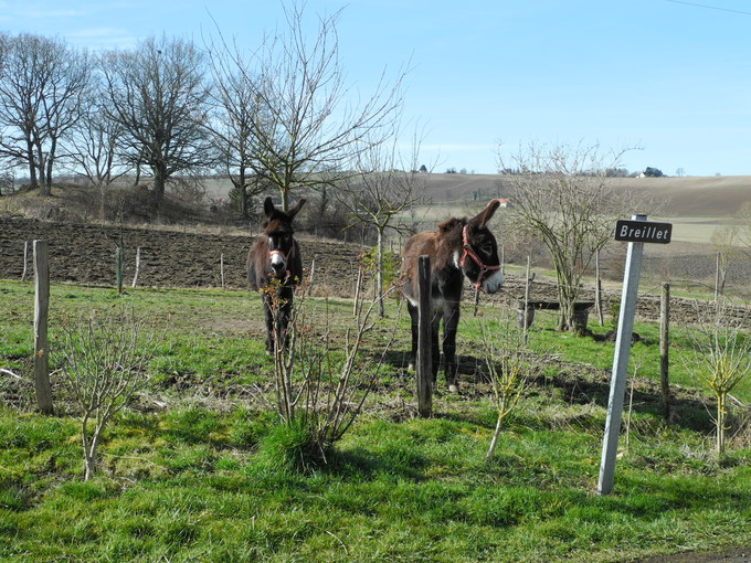 De passage à Breillet, deux ânes du Bourbonnais intrigués observe la caravane passer...