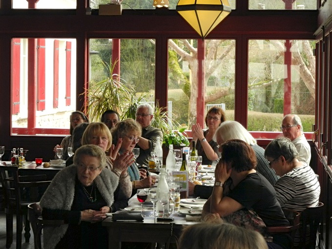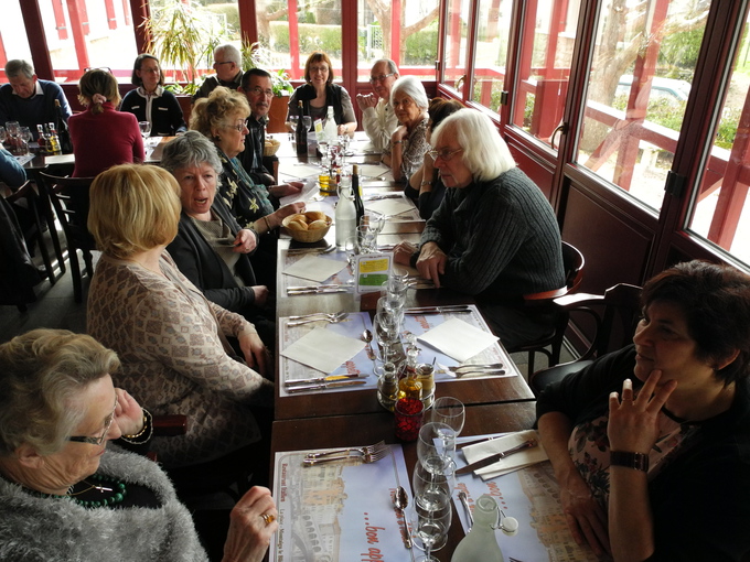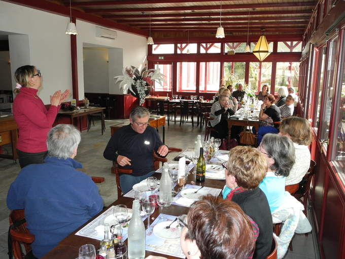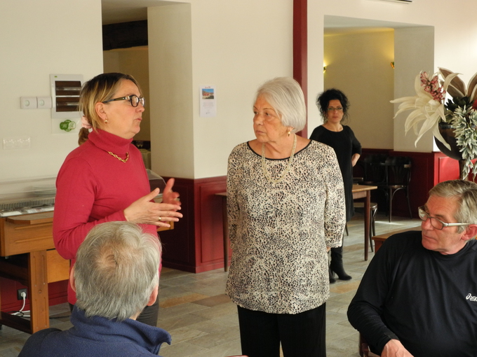 En fin de repas, la Présidente prononce le discours de clôture. Elle transmet les regrets de madame le Maire de n'avoir pu être présente, remercie Alain L. pour ses 3 ans de présidence dynamique, de même que Gille B. pour son rôle de Trésorier depuis de longues années, et remercie également Eric pour son engagement dans la dynamique renouvelée de la section Randonnée, ainsi que Pascal G., le Secrétaire, pour son investissement précieux dans l'association, sous les applaudissements nourris de la salle.