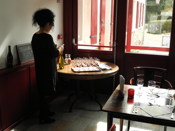 Nathalie, la serveuse, s'affaire à préparer les kirs...