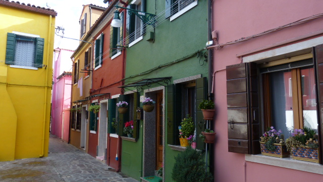 Burano, le village des couleurs. Toutes les maisons sont peintes en couleurs vibrantes. L'histoire dit que c'était pour permettre aux pêcheurs de reconnaître leur village au loin dans la lagune.