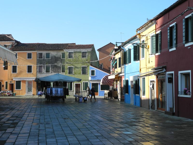 Si son éloignement la rend plus paisible et plus attachante que Murano, beaucoup apprécie son atmosphère avec toutes ses maisons colorées. Les façades composent un magnifique patchwork de couleurs. Burano est principalement connue pour sa dentelle. Connaissez-vous le "point de Burano" ? Pour découvrir le véritable point de Burano, un petit musée est à visiter sur l'île. Mais point de temps à y consacrer ! Dommage que les produits proposés à la clientèle viennent d'Asie !