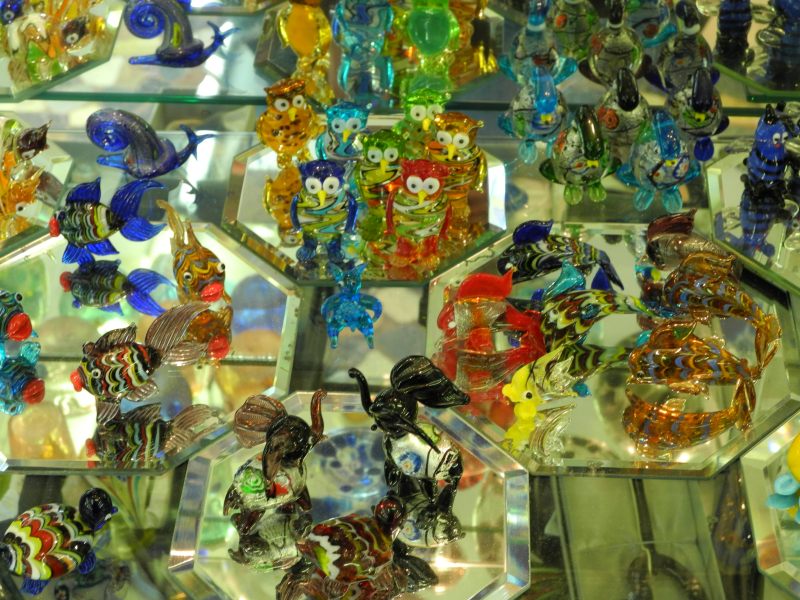 Les objets en verre coloré. Beaucoup de boutiques en proposent, notamment en bijoux pour ces dames.