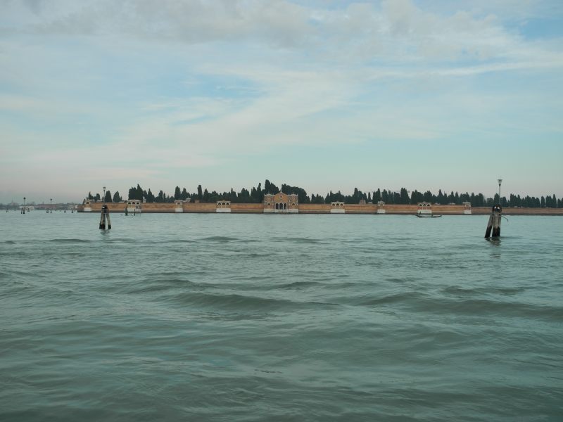 Sur le retour, passage devant l'île San Michele reconnaissable à son mur d'enceinte, avec ses chapelles d'où pointe des dizaines d'élégants cyprès. Dans un premier temps parking à bateaux, elle hébergea un monastère puis accueilla une prison. Aujourd'hui, elle abrite une église renaissance ainsi que le cimetière de Venise. Distante d'un petit kilomètre de Venise.